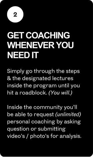 You'll get 5 years access to the personal coaching & online coaching community. You can watch the lesson wherever and whenever you want, as many times as you need.