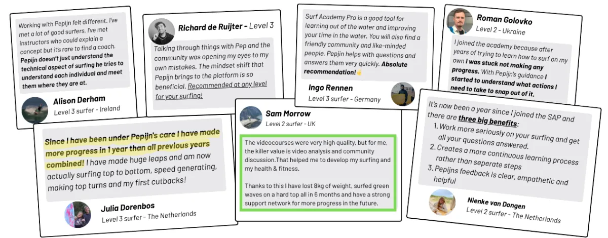 With 0 refunds Iām confident that you will LOVE the coaching program like the 200+ other surfers.
